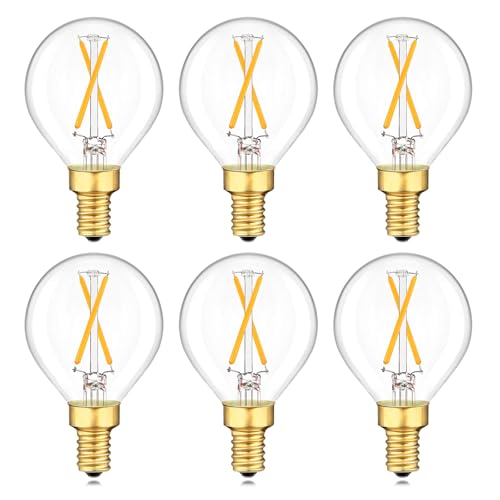 • Dimmable G16.5 E12 LED Bulb G16 1/2 LED Light Bulb 25W Equivalent Small Base Candelabra Edison Bulbs Warm White 2700K 200LM 2W G50 LED Globe Bulb Chandelier Vanity Ceiling Fan Light Bulbs, 6 Pack