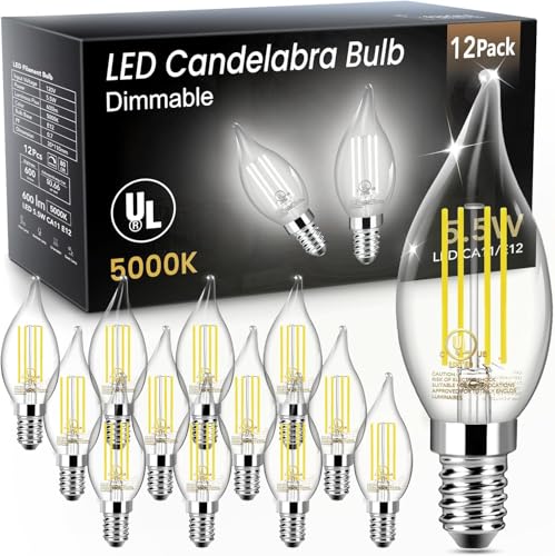 LinMiFo 12-Pack 40W 120V Incandescent Candle Light Bulbs Dimmable Chandelier Light Bulbs, E12 B10 Clear Candelabra Base Bulbs for Pendants or Outdoor, Ceiling Fan, Fireplace, Wall Sconces –