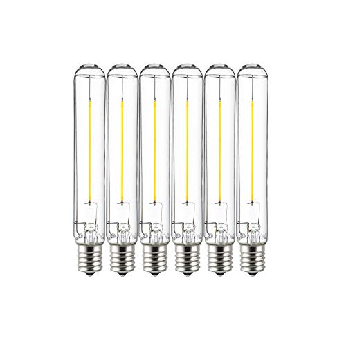 - UPGRADE TO LED – These Edison style antique 2 watts T6 T6.5 tubular LED bulbs are an energy efficient replacement for 25 watt incandescent bulbs. They have an intermediate (E17) base and remain cool to the touch even when lit. They are instant-on at full 180 lumen brightness.